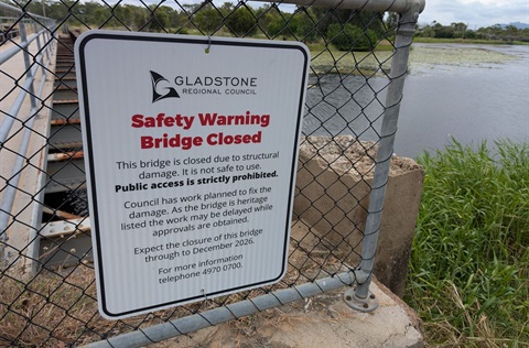 Update on Police Creek Railway Bridge remediation works Published on 17 February 2026 Update on the ongoing closure and planned repair works for the heritage-listed Police Creek Railway Bridge in West Gladstone. Tagged as: , Announcements, Improvement Works, Latest News, Media Releases